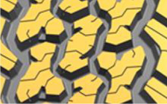 采用高耐磨橡膠和填充增強體系有效抵御惡劣路況行駛中的外部損傷,同時還能提高車輛泥地和沙地行駛的牽引性能。